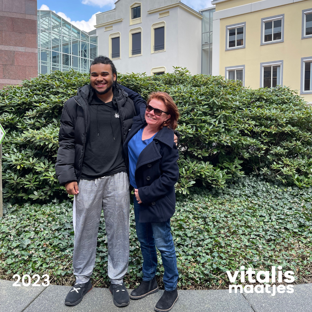 Justa de Jong (53, celliste) en Naythan Mercera (17, eerstejaars Mbo social work) werden zeven jaar geleden maatjes via Vitalis. Al die jaren hebben ze contact gehouden. Naythan: ‘Justa voelt als familie, bijna als een tweede moeder.’